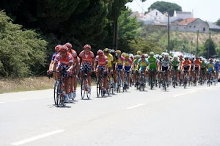 No domingo circuito em Torres Vedras, com o Hector Guerra da Liberty-seguros a sair de amarelo. A Liberty-seguros controlou o pelotão durante toda a corrida anulando a fuga na penúltima volta.